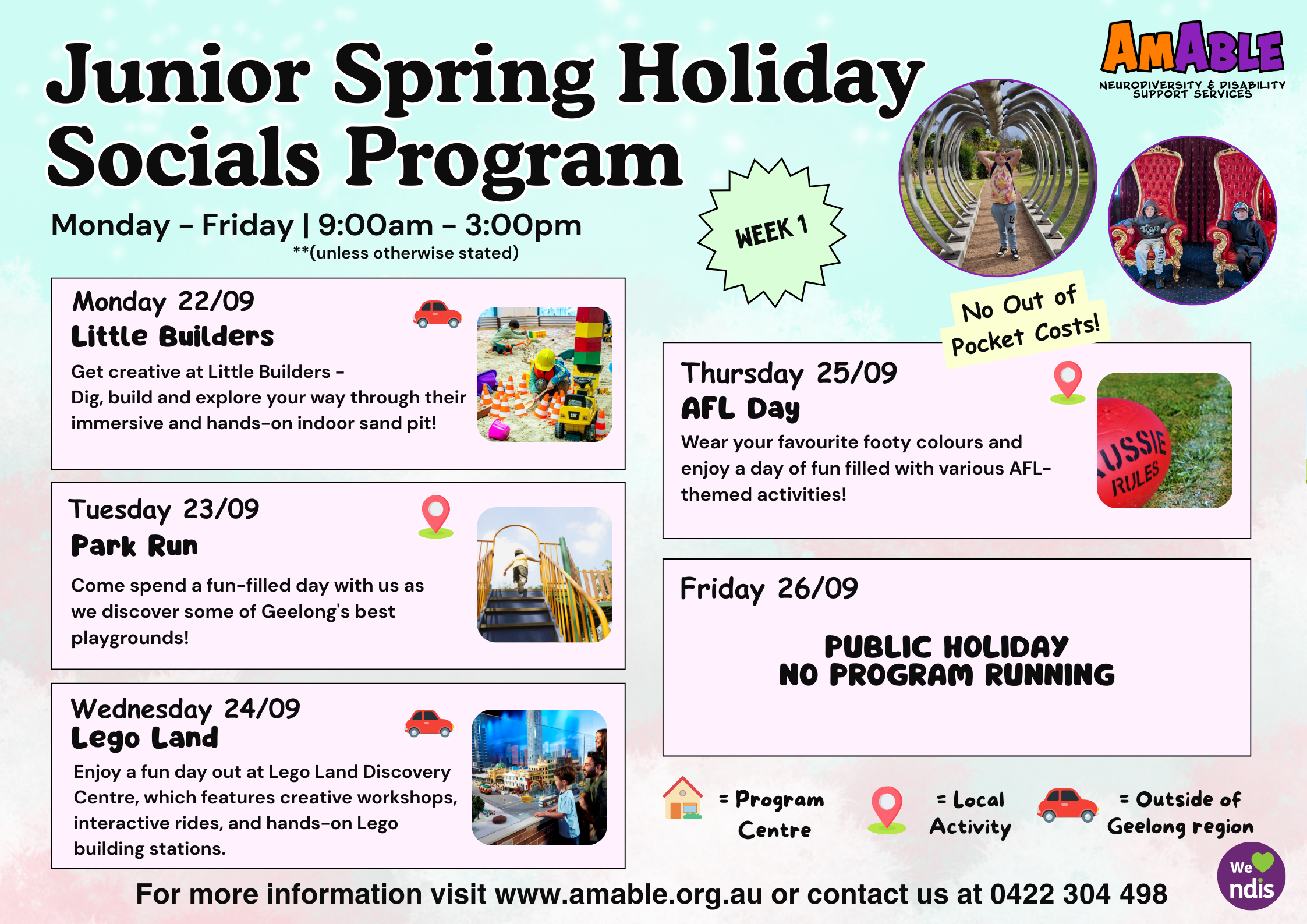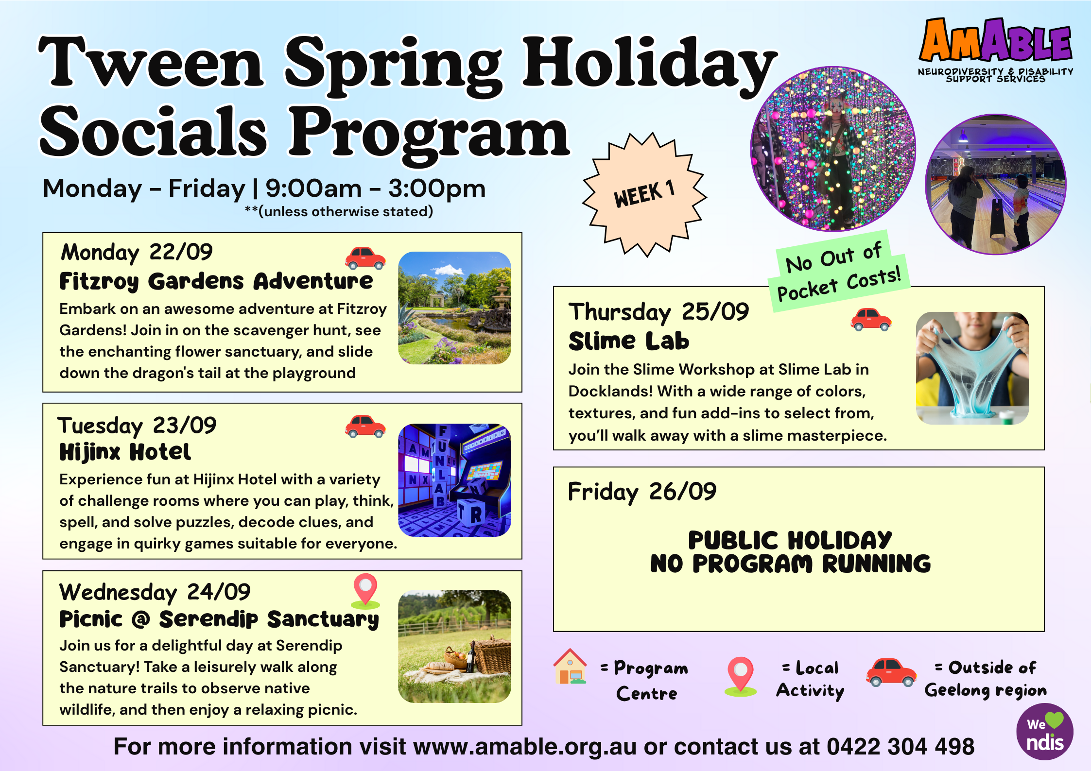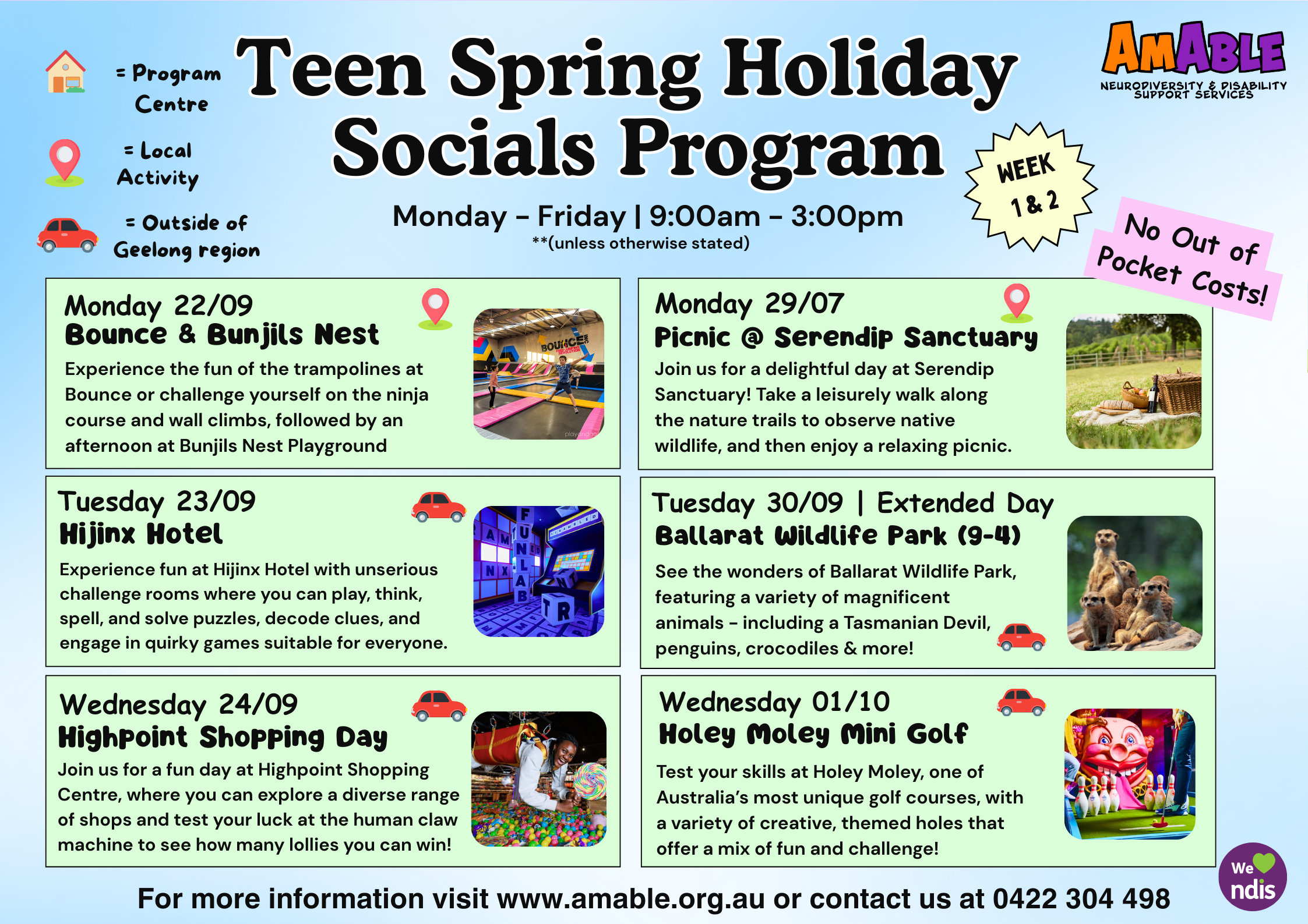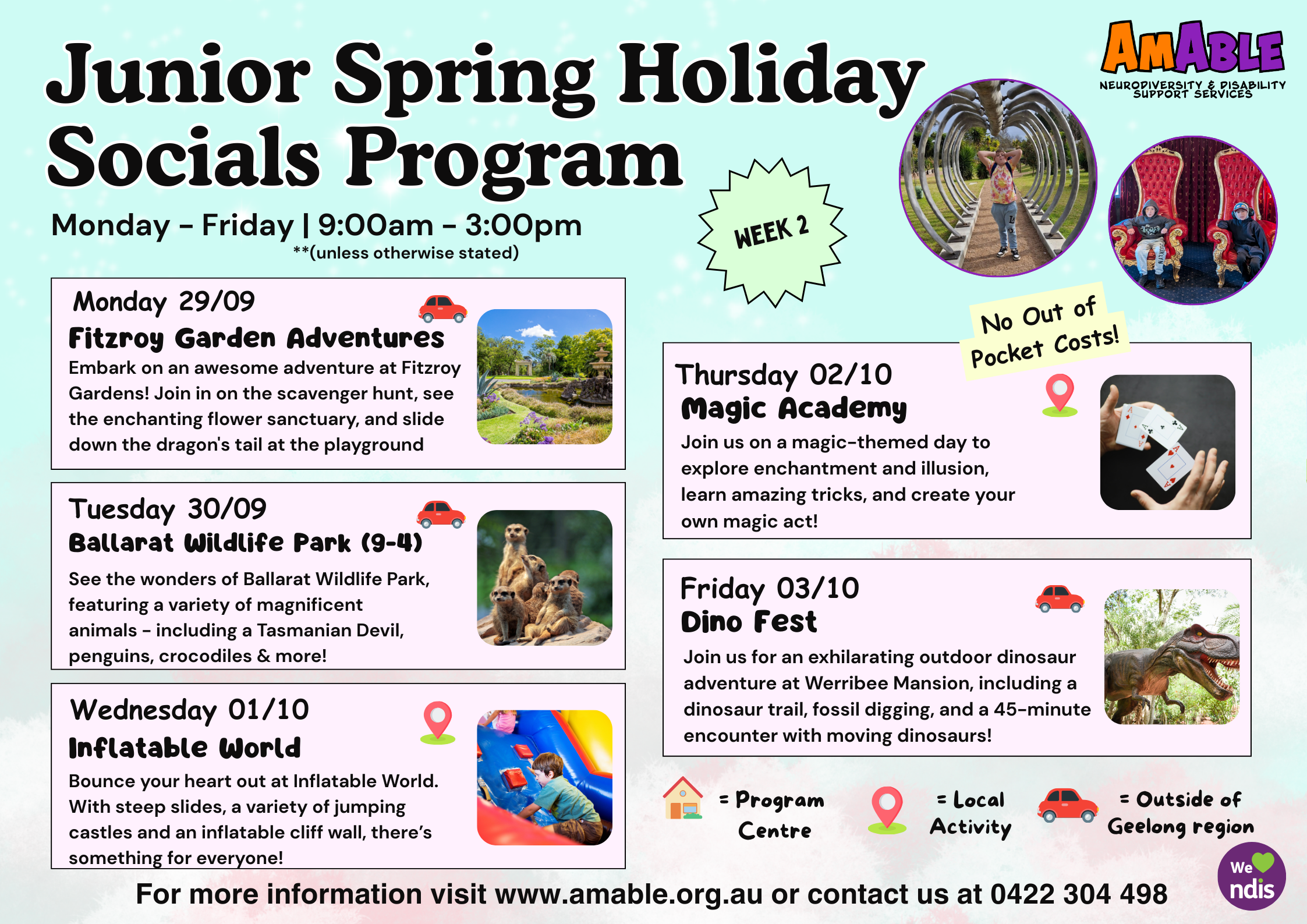 Our programs offer a range of fun & interactive activities to cater for various interests. Activities will include trips out in the community, and centre based activities such as Art & Craft, Science/STEM, Sensory Activities, Cooking & Gaming. In addition, we offer a combination of locations including Melbourne City, Geelong, Surf Coast & Surrounds and include indoor and outdoor venues.